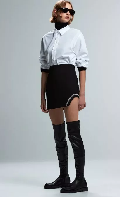 Από την άλλη πλευρά η Ελένη Τσολάκη σε εμφάνιση της στην εκπομπή ''Open Weekend'' επέλεξε μία φούστα με λαμπερή λεπτομέρεια κατά μήκος ενός παρόμοιου cut-out, ένα σατινέ πουκάμισο από τα Zara και μαύρα slingbacks. Το look της είναι ιδανικό τόσο για τις βραδινές εξόδους σου όσο και για το γραφείο συνδυάζοντας το με τα κατάλληλα αξεσουάρ.