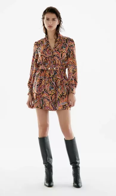 Η Ελένη Βουλγαράκη επέλεξε ένα εμπριμέ μίνι φόρεμα με μακρύ μανίκι, αέρινη σιλουέτα, ''V'' λαιμόκοψη και έντονες αποχρώσεις από τη συλλογή του Zara για το Φθινόπωρο/Χειμώνας '21-22. Η ίδια αναβάθμισε εντελώς το σύνολο της προσθέτοντας κόκκινες over the knee μυτερές μπότες από την εταιρεία NAΚ. Τα εν λόγω χρώματα είναι ιδανικά για να κάνεις κάθε σου look εορταστικό με έναν πιο διακριτικό τρόπο αυτή την περίοδο, χωρίς να προσθέσεις παγιέτα!