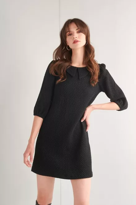 Μίνι φόρεμα σε ανοιχτή γραμμή με έντονο γιακά και ανάγλυφι ύφασμα, Ale the non usual casual