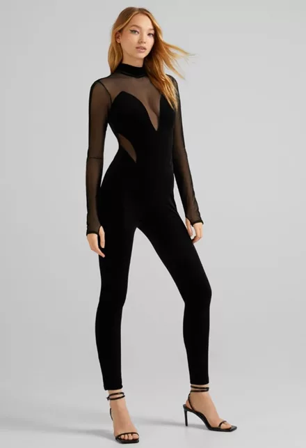 Βελούδινη ολόσωμη φόρμα με τούλι, Bershka
