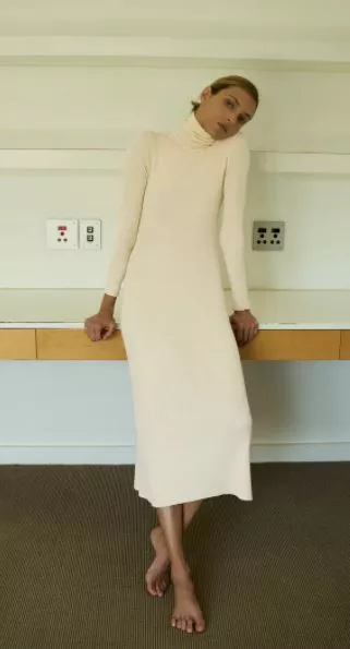 Μίντι φόρεμα με κλειστή λαιμόκοψη και πλέξη ριμπ, Zara