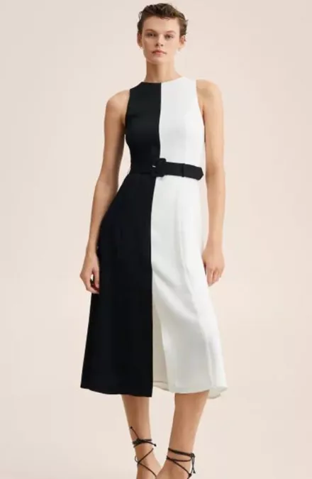 Μίντι αμάνικο φόρεμα με διχρωμία, Mango
