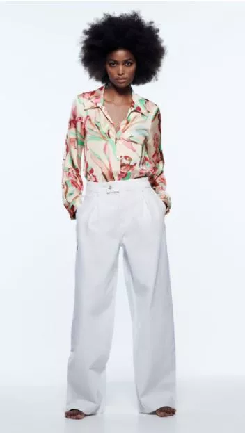 Εμπριμέ σατινέ πουκάμισο, Zara