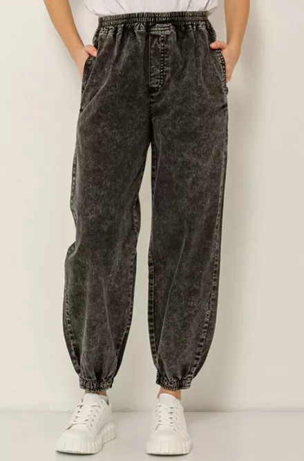 Ψηλόμεσο jogger ντένιμ με λάστιχο στη μέση και στο τελείωμα, Pink Woman