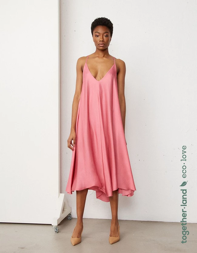 Έχει σατινέ υφή, η οποία είναι δροσερή και απαλή, ενώ έχει συνδυαστεί με την πολυτέλεια -στοιχεία που θα αναβαθμίσουν ακόμα και το πιο απλό style combo με λευκά sneakers. Τέλος, φέρει λεπτές, μινιμαλιστικές, ρυθμιζόμενες τιράντες, μία ''V'' λαιμόκοψη και έχει δημιουργηθεί από φυσικές ίνες.