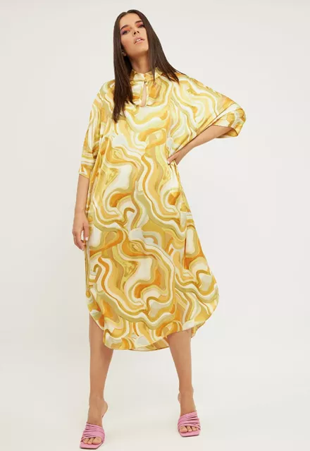 Όσον αφορά στις αποχρώσεις και τα μοτίβα, οι επιλογές ποικίλουν, αφού μπορείς να βρεις φορέματα σε έντονες μονοχρωμίες όπως το πορτοκαλί και το πράσινο ή σε ουδέτερες αποχρώσεις όπως το μαύρο ή το λευκό. Στη συλλογή μάλιστα θα βρεις και φορέματα με άκρως εντυπωσιακά μοτίβα με λουλούδια, μοτίβα με 70s αισθητική, abstract patterns ή λαχούρια που έχουν ως στόχο να σου φτιάξουν αμέσως τη διάθεση.