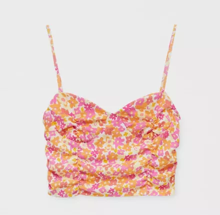 Φλοράλ κροπ τοπ σφηκοφωλιά Pink Woman