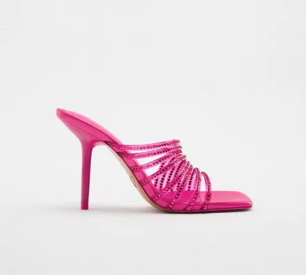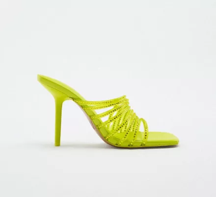Σε περίπτωση που είσαι και εσύ σε party mood, η νέα κατηγορία που δημιούργησε στο online shop της η Zara, θα σε βοηθήσει να δημιουργήσεις τα πιο εντυπωσιακά σύνολα. Στην κατηγορία των Παπουτσιών μάλιστα, βρήκαμε ένα ζευγάρι party shoes, τα οποία θα επέλεγε σίγουρα και η shoe lover, Carrie Bradshaw. Συγκεκριμένα, πρόκειται για ένα ζευγάρι ψηλοτάκουνα mules, τα οποία μπορείς να βρεις σε τρεις διαφορετικές αποχρώσεις: φούξια, κίτρινο neon και λιλά.