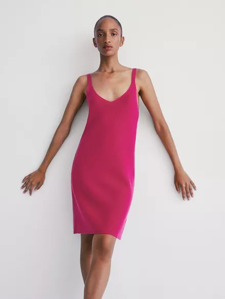 Κοντό πλεκτό φόρεμα με τιράντες, Massimo Dutti