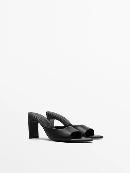 Δερμάτινα mules με τακούνι, Massimo Dutti
