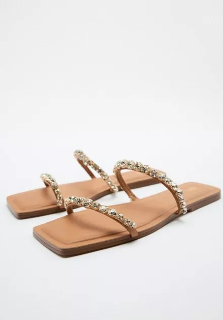 Φλατ σανδάλια με glamorous λεπτομέρειες, Zara