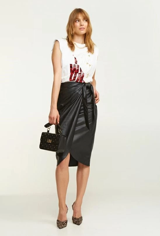 Όπως θα δεις και στη φωτογραφία από τον προσωπικό λογαριασμό της στο Instagram, η Κατερίνα Καινούργιου φοράει μία κρουαζέ φούστα με στενή και ψηλόμεση εφαρμογή, που κολακεύει τη γυναικεία σιλουέτα αναδεικνύοντας τις καμπύλες και τη μέση της. Η φούστα αυτή είναι αρκετά ευέλικτη και πέρα από τη μαύρη απόχρωση της, το σχέδιο σού δίνει την ευκαιρία να την φορέσεις σε πολλές και διαφορετικές περιστάσεις αυτή τη σεζόν. Μην ξεχνάς πως το leather trend πάντα θα δεσπόζει ανάμεσα στις φθινοπωρινές τάσεις και η μίντι φούστα της Κατερίνας Καινούργιου, που θα βρεις στη νέα συλλογή της Lynne, είναι η ιδανική πρόταση για να τη υιοθετήσεις. Η ίδια ολοκλήρωσε το look της με ένα off shoulder μαύρο πουλόβερ και διαχρονικές μαύρες μυτερές γόβες.