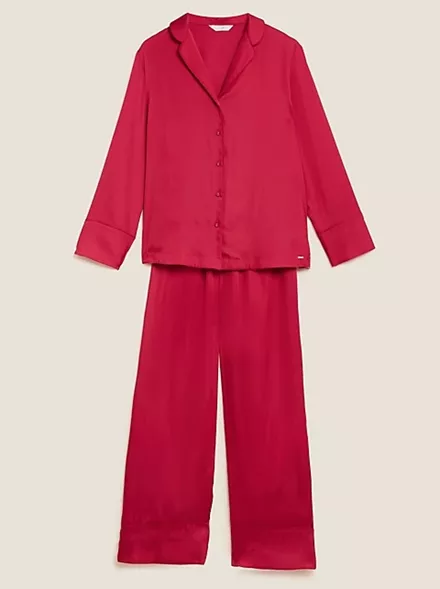 Σετ σατέν πιτζάμες με γιακά Marks & Spencer