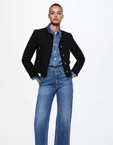Αναζητώντας ένα τέτοιο τζάκετ βρήκαμε τα παρακάτω δύο σχέδια στη συλλογή της Mango, που φέρουν παρόμοιο look έχοντας ακόμη και τα ίδια κουμπιά, τις μεταλλικές λεπτομέρειες που το κάνουν ακαταμάχητο.