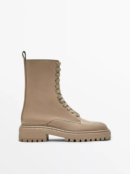 Ταμπά δερμάτινα μποτάκια με τρακτερωτή σόλα, Massimo Dutti.