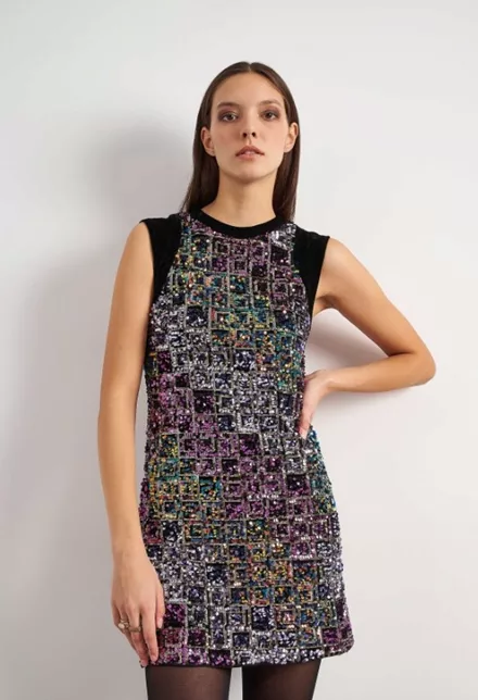 Κοντό φόρεμα με πολύχρωμες παγιέτες attrattivo