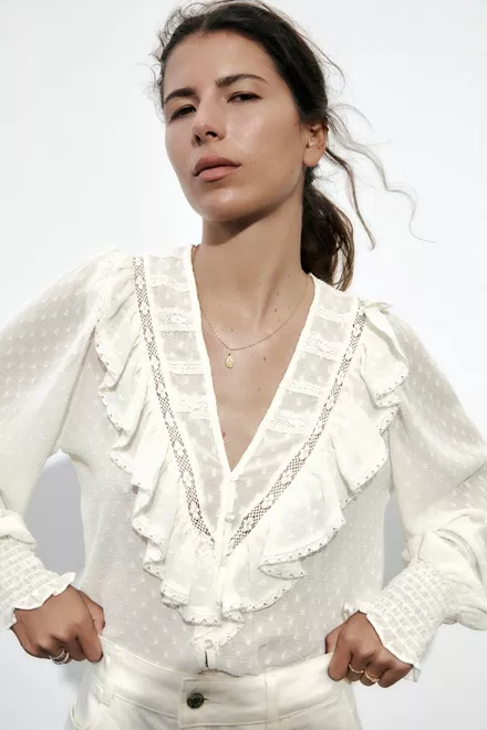 Πουκαμίσα με ανάγλυφα βολάν και πουά, Zara