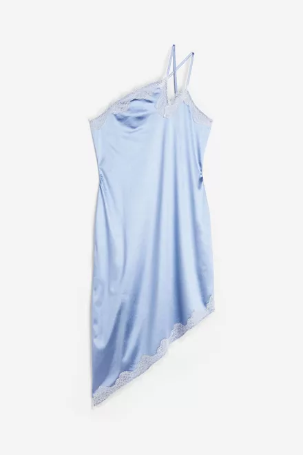 Το μίνι φόρεμα με έναν ώμο σε μπλε απόχρωση που επέλεξε η Αλεξάνδρα Νίκα είναι μία ιδανική επιλογή για ένα girly look στη βραδινή σου έξοδο.