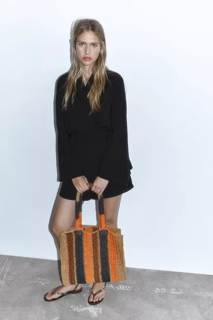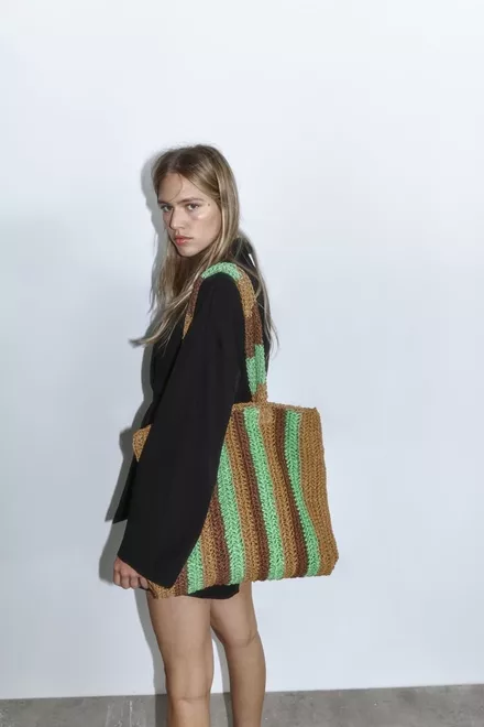 Την τσάντα όπου μπορείς να φοράς στην πόλη και να σου θυμίζει καλοκαίρι αλλά και στην παραλία χαρίζοντας σου πρακτικότητα και άνεση, βρήκαμε στην καλοκαιρινή συλλογή της Zara. Συγκεκριμένα, η ψάθινη τσάντα που ξεχωρίσαμε κυκλοφορεί σε δύο διαφορετικά χρώματα δίνοντας έτσι περισσότερες επιλογές ανάλογα με το στιλ και την αισθητική σου. Η maxi τσάντα shopper με ρίγες από τη Zara διατίθεται σε δύο διαφορετικές εκδοχές όπου στην μία βρίσκουμε τις ρίγες να είναι στις αποχρώσεις του πορτοκαλί, του καφέ και του μαύρου ενώ στη δεύτερη εκδοχή οι ρίγες είναι στους τόνους του πράσινου και του καφέ.
