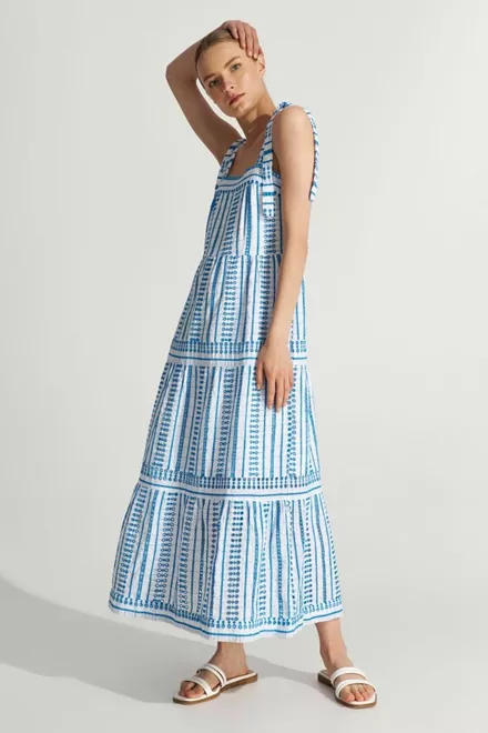 Καφτάνι από 100% λινό tie dye μπλε, Massimo Duti
