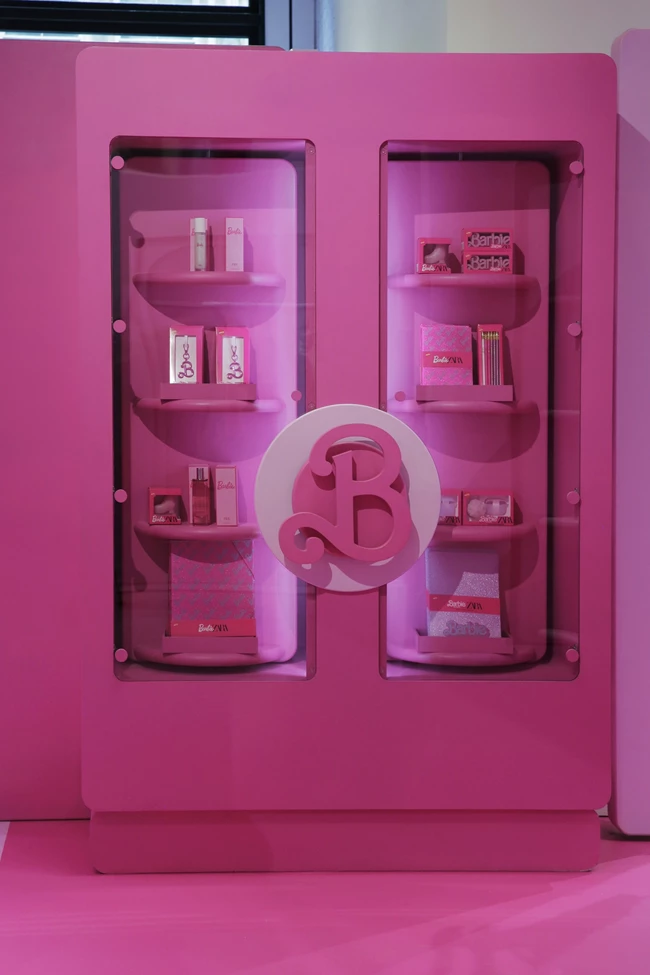 Τα pop-ups εμπνέονται από το "Barbie Dreamhouse" που αναβιώνει στα σκηνικά της ταινίας και ολοκληρώνεται με ένα δοκιμαστήριο σε φυσικό μέγεθος και ένα μηχάνημα αυτόματης πώλησης, το οποίο προσκαλεί τους επισκέπτες να αλληλεπιδράσουν γυρίζοντας έναν τροχό που περιστρέφει τα ράφια των προϊόντων.