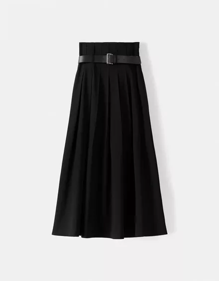 Μίντι φούστα με πιέτες και άνοιγμα, Bershka