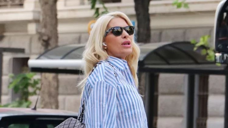 Η Ελένη Μενεγάκη επέλεξε να αναβαθμίσει το look που δημιούργησε με ένα λευκό κοστούμι επιλέγοντας ένα άκρως ανοιξιάτικο top. Συγκεκριμένα, η Ελένη Μενεγάκη επέλεξε να φορέσει ένα κοστούμι σε loose γραμμή και λευκό χρώμα το οποίο συνδύασε με ένα top σε μπλε σκούρα απόχρωση με οριζόντιες ρίγες σε λευκό χρώμα.