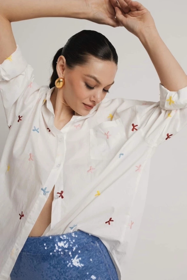 4. Φέτος, αφενός είμαι σε διαδικασία ανανέωσης της γκαρνταρόμπας μου αφετέρου θέλω να το πετύχω επενδύοντας σε κομμάτια που είναι μία elevated εκδοχή κάποιων κλασικών. Ακριβώς για αυτόν τον λόγο ξεχώρισα αυτό το πουκάμισο με το bow print από τη νέα συλλογή του brand Cache Cache. Είναι πολύ cute και να αναβαθμίσει ακόμα και ένα basic outfit.