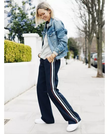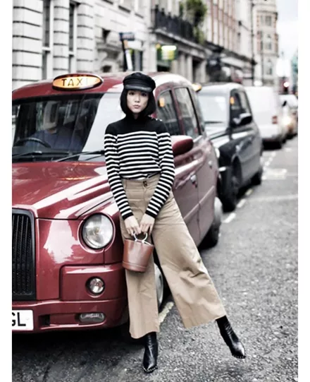 Cropped παντελόνι + Ριγέ πουλόβερ