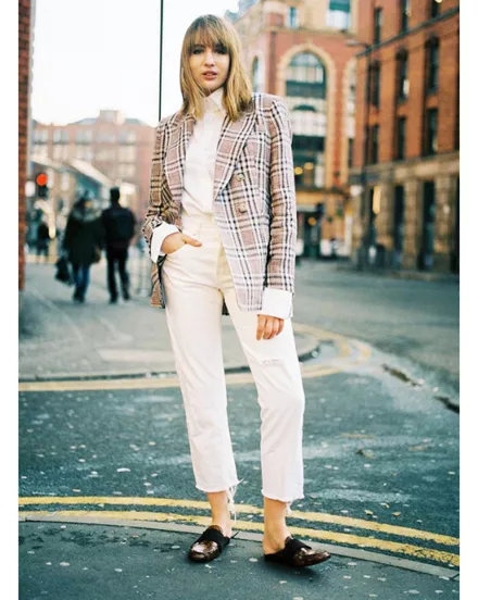 Λευκό παντελόνι + Λευκό ζιβάγκο + Blazer