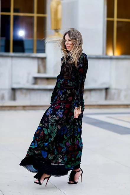 Η Erica Pelosini τολμάει να φορέσει το μάξι φλοράλ φόρεμα σε ένα μοτίβο που θυμίζει βαλκανική τέχνη και δεν έχουμε δει να φοριέται πολύ ακόμα.