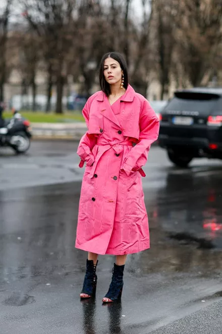 Η Gilda Ambrosio φοράει την κλασική καμπαρντίνα στο πιο τολμηρό φούξια χρώμα και μας κάνει να ξεχάσουμε όλα τα υπόλοιπα.