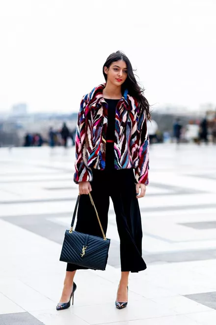 Η Melanie Darmon αναδεικνύει το total black look της με μία γούνα σε έντονους χρωματισμούς