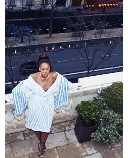 Η Rihanna αποδεικνύει πως το ριγέ είναι η απόλυτη τάση. Εδώ, βέβαια, απλά φοράει το μπουρνούζι της και μία ασορτί πετσέτα ως... εσάρπα!