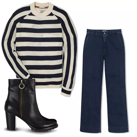 Η χειμερινή εκδοχή της μαρινιέρας δεν είναι παρά ένα πουλόβερ με οριζόντιες γραμμές. Συνδύασέ το με ένα φαρδύ cropped παντελόνι και ankle boots, για chic αποτέλεσμα.