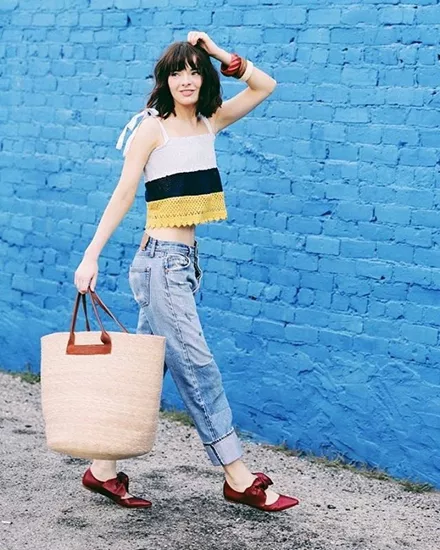 Ανάδειξε το πλεκτό 70s top με ένα ανοιχτόχρωμο τζιν