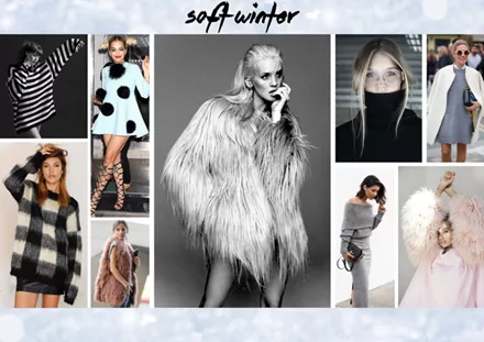 SOFT WINTERΓούνινες λεπτομέρειες, μαλακές υφές και πλούσιες χρωματικές αντιθέσεις συνθέτουν αυτή την τάση. Μπορντό και λευκό, γκρι και μαύρο πρωταγωνιστούν σε κομμάτια με κεντήματα και διαφάνειες για εντυπωσιακά looks. Tο "must-have" της σεζόν είναι το γιλέκο με τη faux γούνα, ένα βασικό κομμάτι που πρωταγωνιστεί από την πασαρέλα μέχρι τα πιο δημοφιλή blogs.