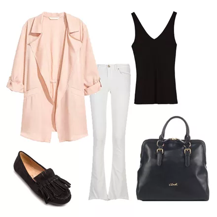 Τζάκετ, H&M, 39,99 ευρώ, hm.comΤοπ, BSB, 12,90 ευρώ, bsbfashion.comΠαντελόνι, BSB, 79,90 ευρώ, bsbfashion.comΜοκασίνια, Migato, από 50,00 τώρα 15,00 ευρώ, migato.comΤσάντα, Axel, 73,00 ευρώ, axelaccessories.com