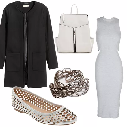 Midi φόρεμα MINKPINK, 89,00 ευρώ, favela.grΠαλτό Η&Μ, 39,99 ευρώ, hm.com/grBackpack Pink Woman, 35,99 ευρώ, pinkwoman-fashion.comΒραχιόλι Bone Cuff Nervous System, 143,00 ευρώ, designisthis.comΜπαλαρίνες με cut outs Keep Fred, 39,00 ευρώ, keepfred.gr