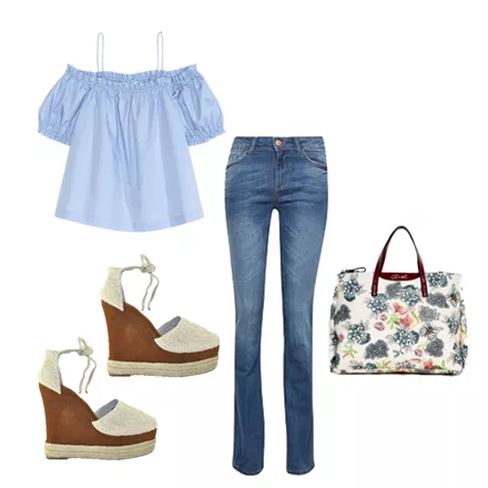Τοπ, H&M, 9,99 ευρώ, www.hm.com/grDenim παντελόνι, BSB, 79,90 ευρώ, www.bsbfashion.comΠλατφόρμες, Jeffrey Campbell, 195,00 ευρώ, www.favela.grΤσάντα, Axel Accessories, 65,00 ευρώ, www.axelaccessories.com