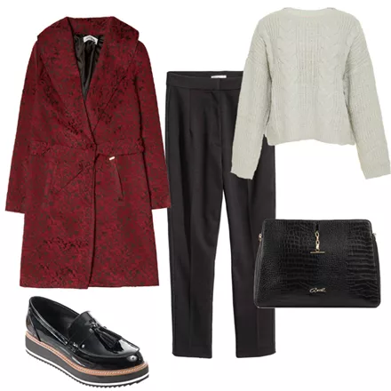 Πουλόβερ, Pink Woman, 25.99 ευρώ, www.pinkwoman-fashion.comΠαντελόνι σε ίσια γραμμή, H&M, 29.99 ευρώ, www.hm.comFlatform μοκασίνια, Attrattivo, 59.00 ευρώ, www.attrattivo.grΠαλτό με ανάγλυφη υφή, BSB, 149.90 ευρώ, www.bsbfashion.comΤσάντα κροκό με αλυσίδα, Axel, 66.00 ευρώ, www.axelaccessories.com