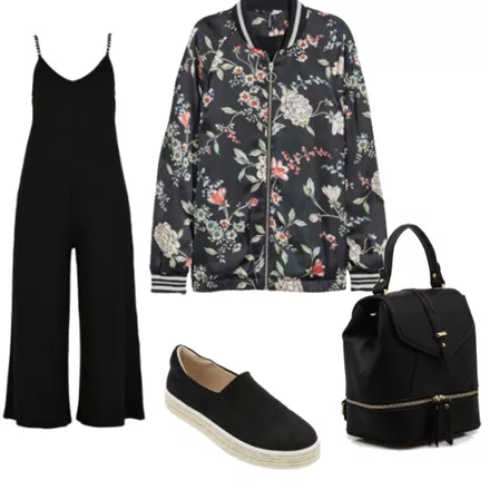 Ολόσωμη φόρμα, E-xlusive, 49,00 ευρώ, www.e-xclusive.comΕσπαντρίγιες, KeepFred, 59,00 ευρώ, www.keepfred.grBomber Jacket, H&M, 34,99 ευρώ, www.hm.comΤσάντα πλάτης, Bozikis, 29,99 ευρώ, www.bozikis.gr