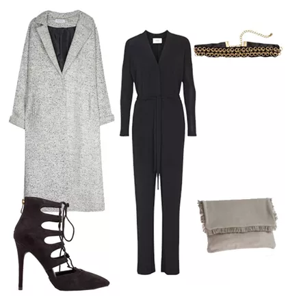Ολόσωμη φόρμα, 135,00 ευρώ, favela.grClutch, Happy M, 180,00 ευρώ, stylebubbles.comΠαλτό, BSB, 159,90 ευρώ, bsbfashion.comΓόβες, Migato, 60,00 ευρώ, migato.comChoker, H&M, 7,99 ευρώ, hm.com