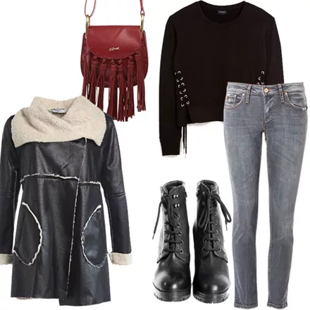 Φούτερ με κορδόνια True Religion, 119,00 ευρώ, clodist.grΤζιν παντελόνι ίσιο attrattivo, 79,90 ευρώ, attrattivo.grΜποτάκια ψηλοτάκουνα attrattivo, 139,90 ευρώ, attrattivo.grSheepskin παλτό Helmi, 119,00 ευρώ, helmi.grΤσάντα με κρόσσια Axel, 73,00 ευρώ, axelaccessories.com