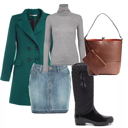 Ημίπαλτο, HELMI, 89.90 ευρώ, www.helmi.grDenim φούστα, Pink Woman, 29.99 ευρώ, pinkwoman-fashion.comΓαλότσες, MIGATO, 30 ευρώ, www.migato.comΤσάντα, Η&Μ, 29.99 ευρώ, www2.hm.comΖιβάγκο, Just Female – Riz, 48 ευρώ, favela.gr