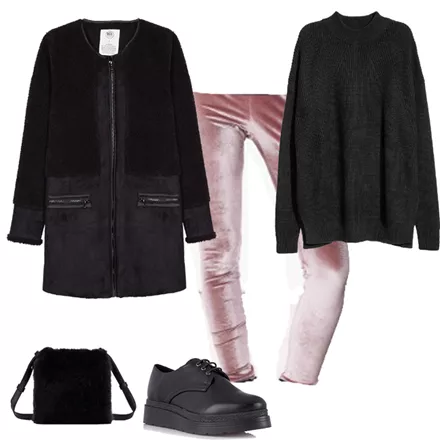 Παλτό με σουέντ υφή, BSB, 119.90 ευρώ, www.bsbfashion.comΠουλόβερ με ζιβάγκο, H&M, 24.99 ευρώ, www.hm.comΒελούδινο κολάν, Regalinas, 19.90 ευρώ, www.regalinas.grFlatforms, Bozikis, από 29.99 ευρώ τώρα 14.99 ευρώ, www.bozikis.grΓούνινο τσαντάκι Lydc, Favela, 32.00 ευρώ, www.favela.gr