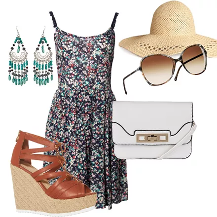 Φόρεμα, Cute, Attrattivo, 49.99 ευρώ, store.attrattivo.grΠλατφόρμες, Pink Woman, 39.99 ευρώ, pinkwoman-fashion.comΤσάντα, Achilleas Accessories, 8.91 ευρώ, www.achilleasaccessories.grΓυαλιά ηλίου, Chanel, pr.chanel.comΚαπέλο, H&M, 12.99 ευρώ, www.hm.com/grΣκουλαρίκια, Lynne, 12.90 ευρώ, www.lynne.gr