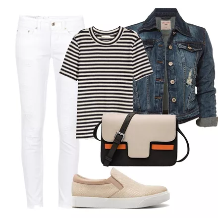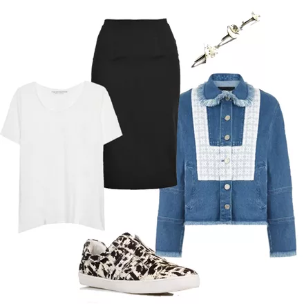 Denim Jacket, Pink Woman, 29.99 ευρώ, pinkwoman-fashion.comΤοπ, H&M, 14.99 ευρώ, www.hm.comSlip ons, Migato, 40 ευρώ, www.migato.comΤσάντα, LILI RADU, 199.50 ευρώ, stylebubbles.com