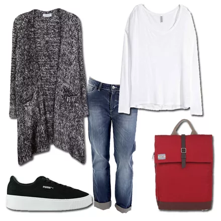 Τοπ, H&M, 9,99 ευρώ, hm.comΖακέτα, BSB, 79,90 ευρώ, bsbfashion.comΤζην παντελόνι, e-xclusive, από 59,00 τώρα 29,00 ευρώ, e-xclusive.comBackpack, TOMS, από 80,00 τώρα 72,00 ευρώ, sagiakos.grSneakers, Puma, από 110,00 τώρα 88,00 ευρώ, favela.gr