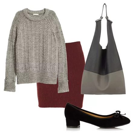 Φούστα, Pink Woman, 12.99 ευρώ, pinkwoman-fashion.comΜπαλαρίνες, Bozikis, 14.99 ευρώ, www.bozikis.grΠουλόβερ, Η&Μ, 19.99 ευρώ, www2.hm.comΤσάντα, Park House, 160 ευρώ, stylebubbles.com